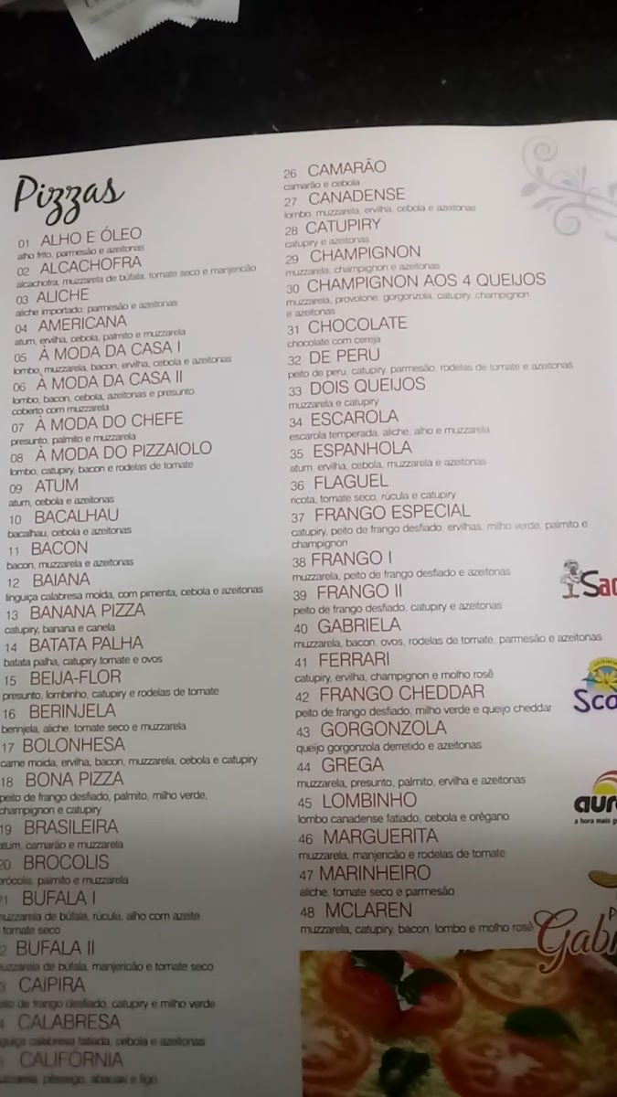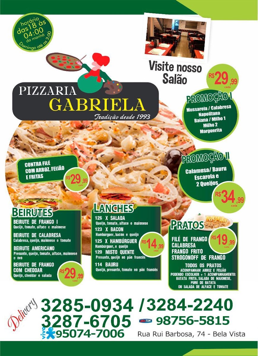 Overall, Pizzaria Gabriela stands out for its traditional approach to pizza, with a focus on high-quality ingredients and expert preparation. Whether you’re in the mood for something meaty or a vegetarian delight, the menu offers a well-rounded selection that caters to all tastes. The prices, such as R$ 52,00 for a hearty calabresa pizza, reflect the excellent value and authentic experience the restaurant provides.